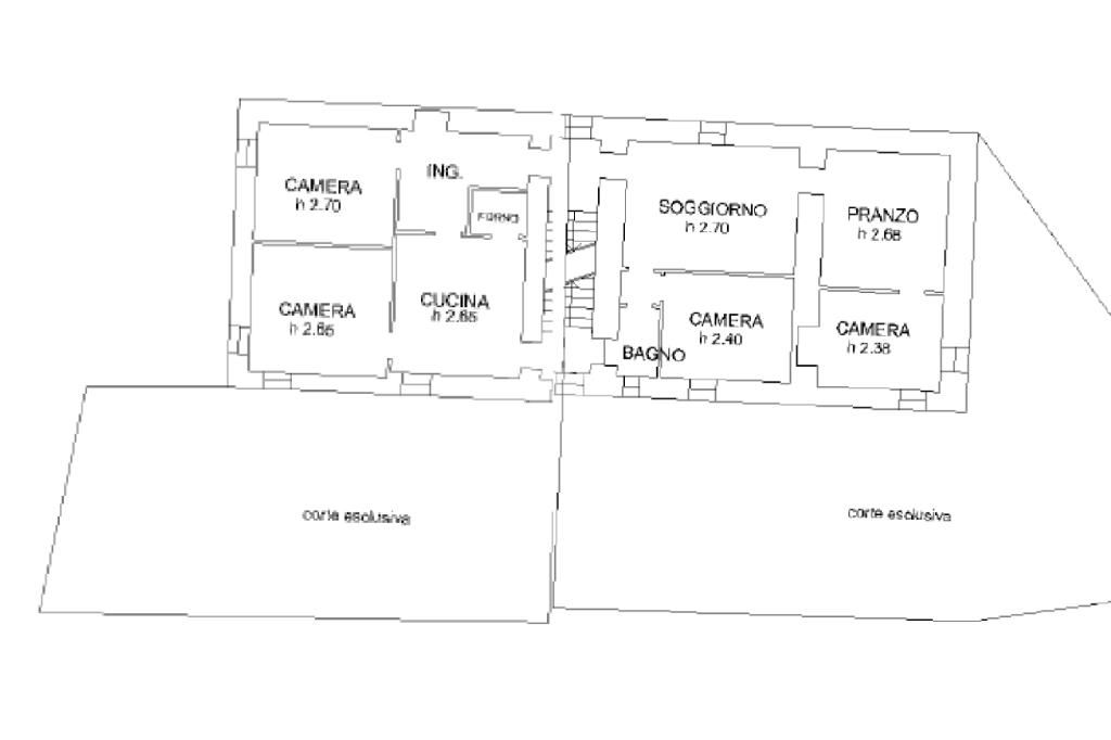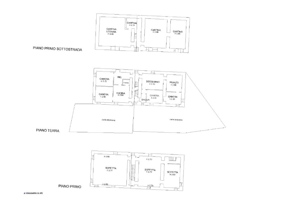 Superficie: 284 mq distribuiti su tre livelli, con possibilità di realizzare due unità abitative indipendenti.