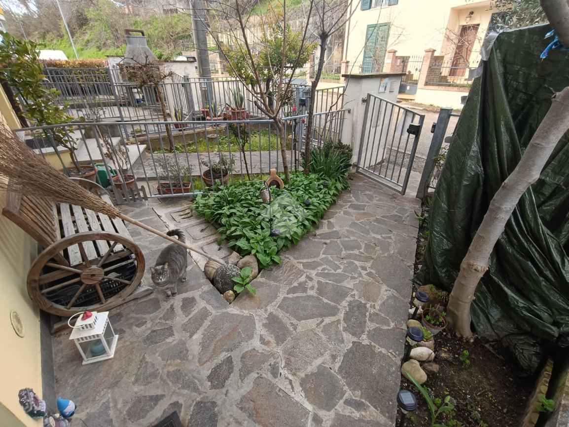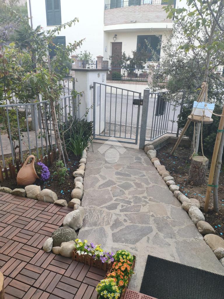 Accesso alla proprietà tramite una corte privata con piccolo giardino, ideale per momenti di relax all’aperto.
