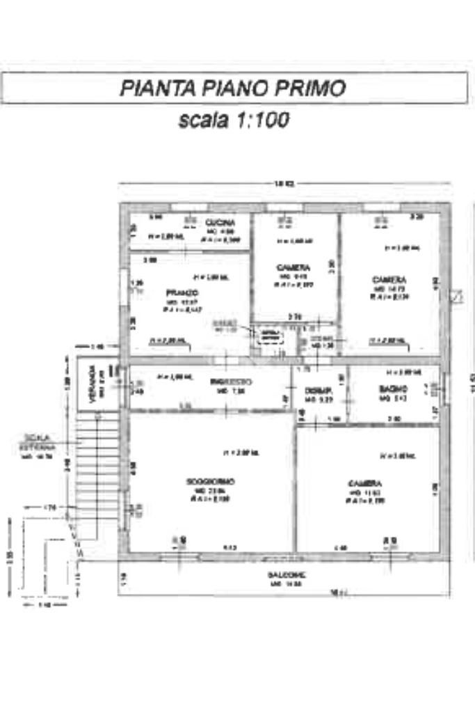 Salendo tramite scala esterna privata si accede al primo piano, dove un ingresso conduce a un grande soggiorno e a una sala da pranzo di generose dimensioni, collegata a una cucina abitabile e a un ripostiglio con accesso al sottotetto, utilizzabile come ulteriore spazio di deposito.