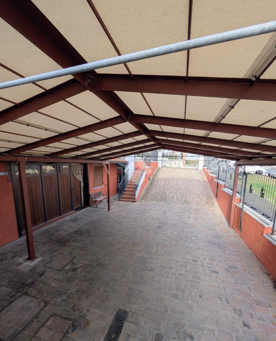 L’immobile si sviluppa su più livelli. Al piano seminterrato troviamo un comodo box auto, una spaziosa tavernetta, ripostigli, lavanderia e un ampio parcheggio esterno protetto da tettoia, ideale per più autovetture.