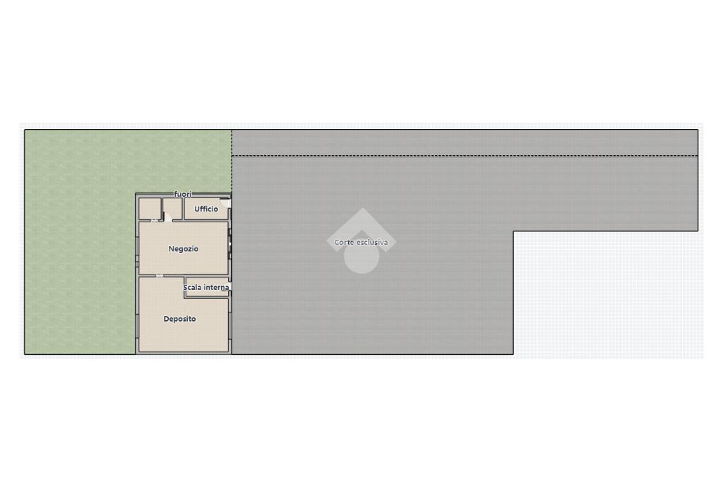 Al piano terra, un negozio attualmente affittato rappresenta un'opportunità di reddito immediato. La superficie delle unità commerciali è di circa 215mq.